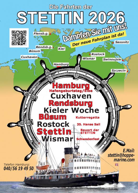 Informationen und Kartenverkauf: Telefon: 040 56194950 oder E-Mail: stettin@hoppe-marine.com